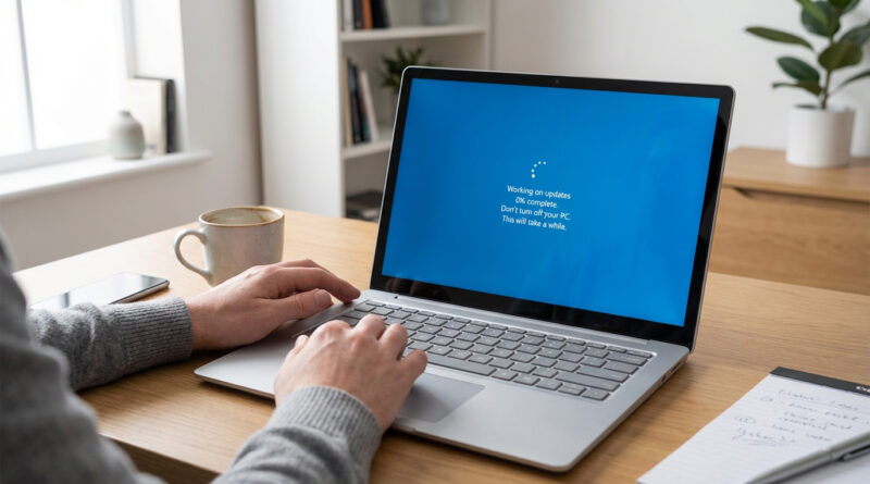 - Don’t hold the power button as your first move. Use the steps above first. A forced shutdown can make an in-progress update messier.