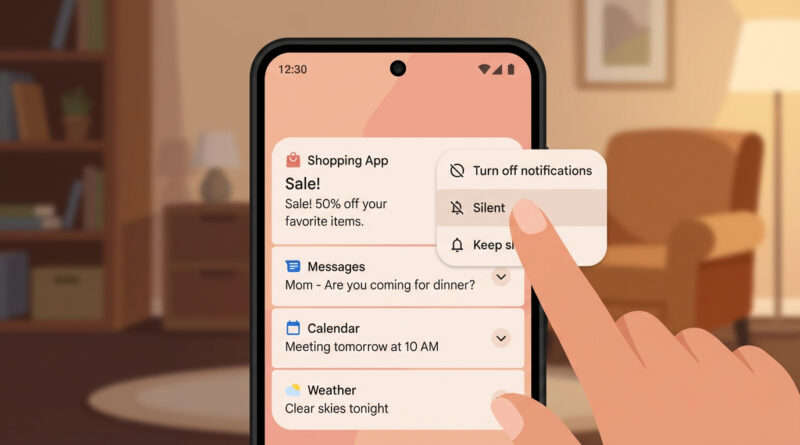 For one week, treat every new notification as a yes or no question and long‑press it on the spot: if it is not something you would want to see again, tap the small settings icon on that notification and turn that app’s alerts off or to silent right there. This slow‑and‑steady cleanup trains your phone around your real daily habits instead of guessing in a crowded settings menu.